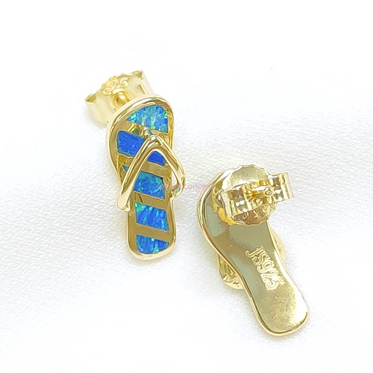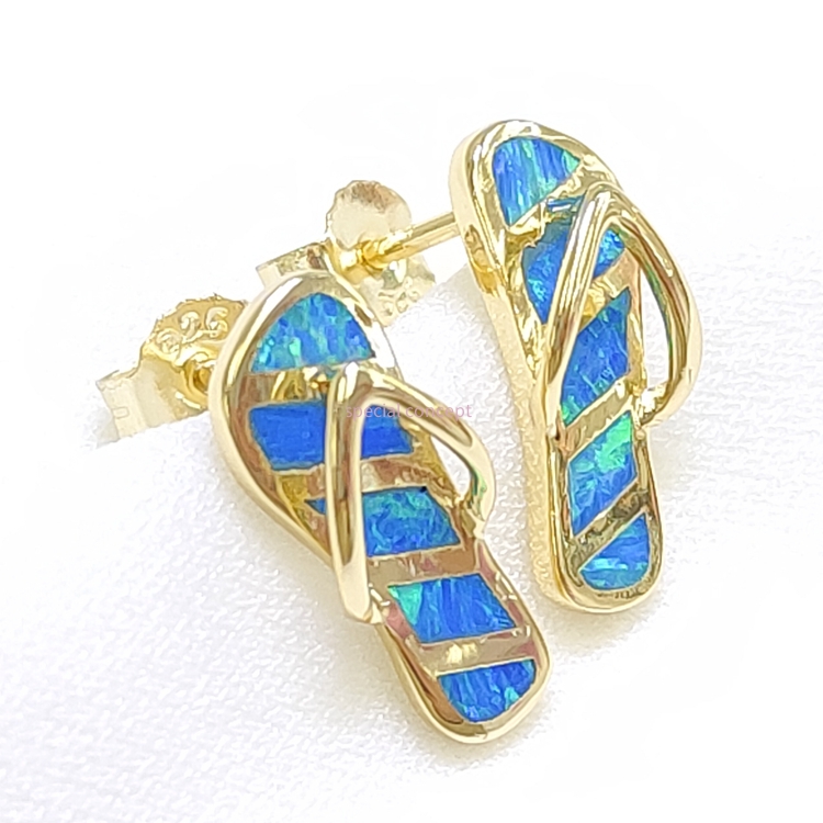 Silver earrings,Synthetic opal,Flip-flop style E18574G